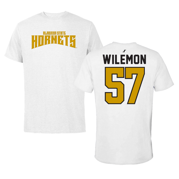 Alabama State University Football White Classic Tee - #57 Garrett Wilemon