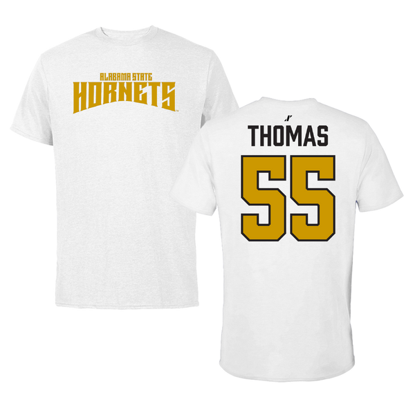 Alabama State University Football White Classic Tee - #55 Dezmon Thomas