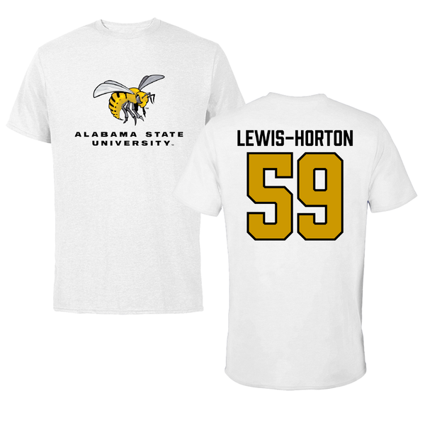 Alabama State University Football White Performance Tee - #59 Jaland Lewis-Horton