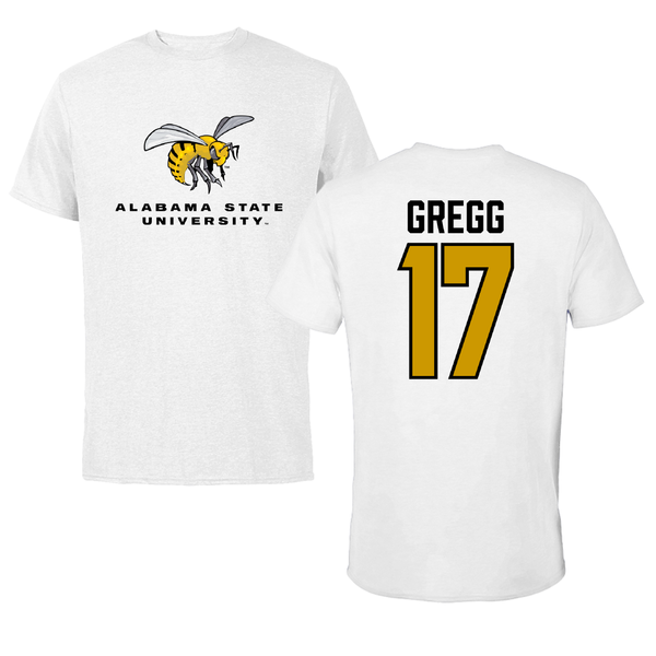 Alabama State University Football White Performance Tee - #17 Asa Gregg