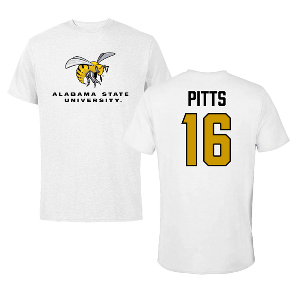 Alabama State University Football White Performance Tee - #16 Christian Pitts