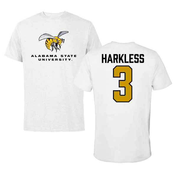 Alabama State University Football White Performance Tee - #3 Luke Harkless