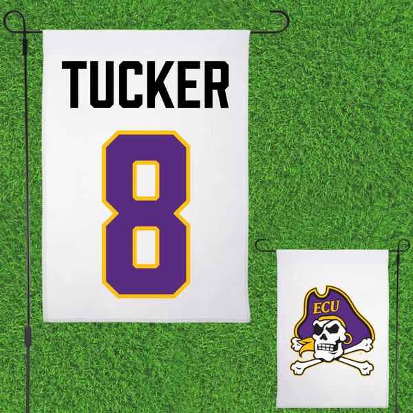East Carolina University Soccer White Garden Flag - #8 Alyssa Tucker