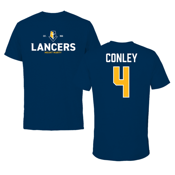 Mount Marty University Football Navy Gameday Tee - #4 Amir Conley