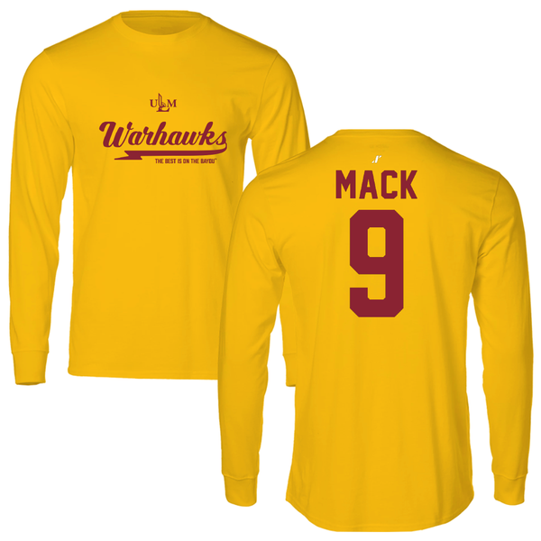 University of Louisiana Monroe Football Gold General Long Sleeve - #9 Andre Mack