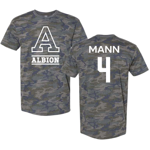 Albion College Volleyball (W) Vintage Camo Tee - #4 Annalynn Mann