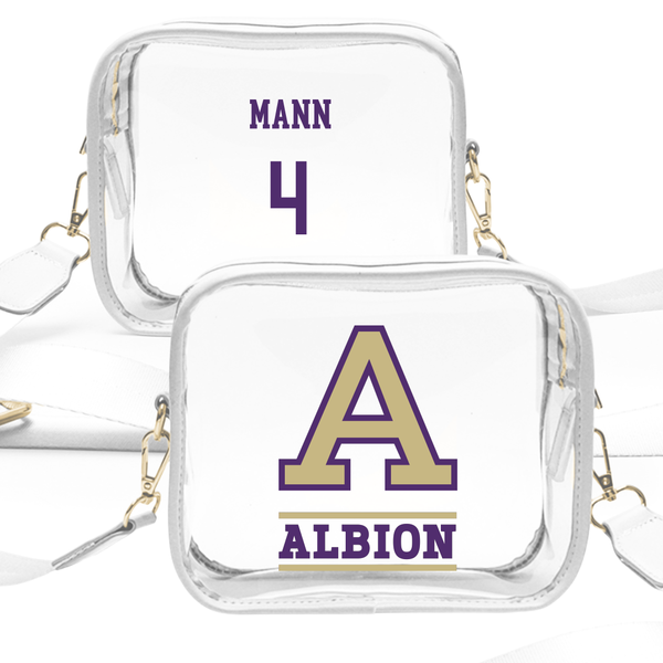 Albion College Volleyball (W) White Clear Stadium Bag - #4 Annalynn Mann