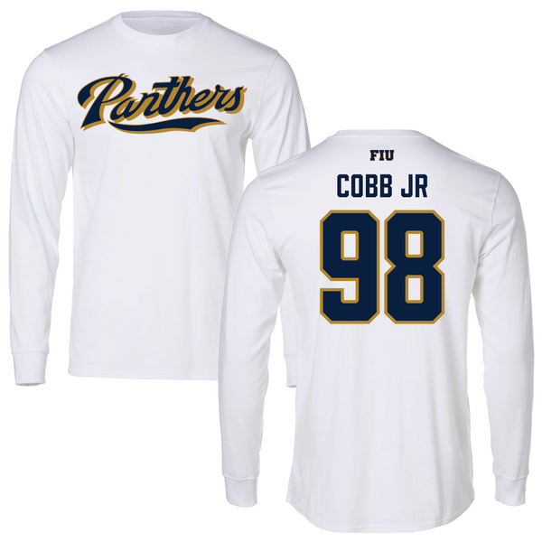 Florida International University Football White Panthers Long Sleeve - #98 Antoine Cobb Jr
