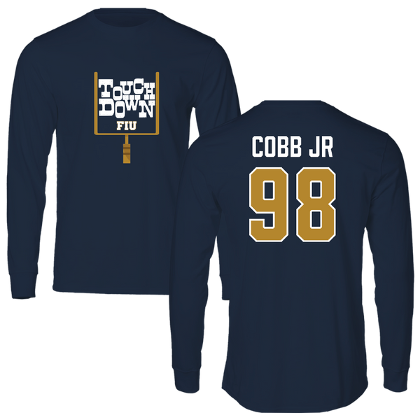 Florida International University Football Navy Touchdown Long Sleeve - #98 Antoine Cobb Jr