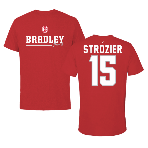 Bradley University Basketball Red Tee - #15 Armoni Strozier