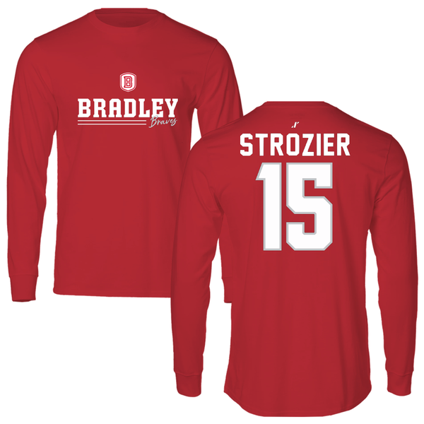 Bradley University Basketball Red General Long Sleeve - #15 Armoni Strozier