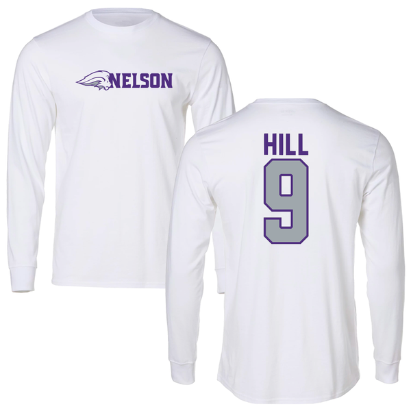 Nelson University Volleyball White Performance Long Sleeve - #9 Ashlyn Hill