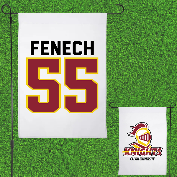Calvin University Football White Garden Flag - #55 Austin Fenech