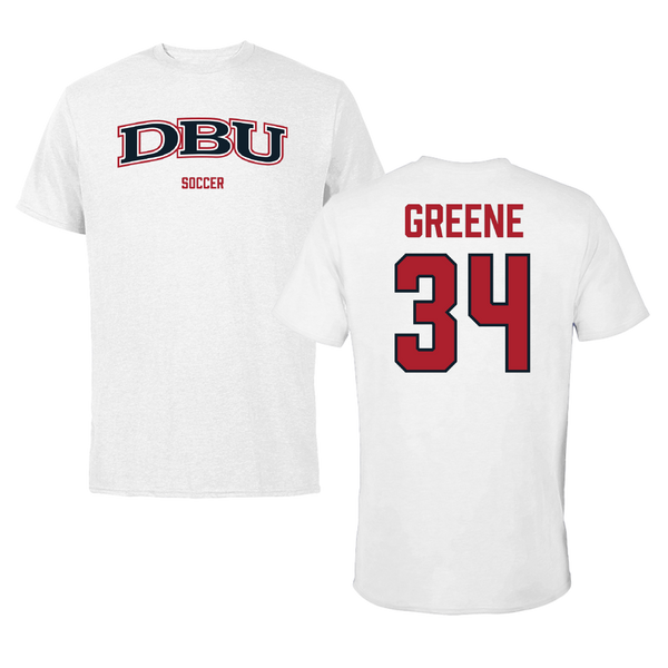 Dallas Baptist University Soccer (W) White Tee - #34 Ava Greene