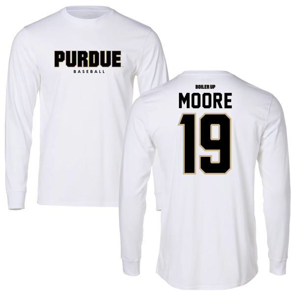 Purdue University Baseball White Long Sleeve - #19 Avery Moore