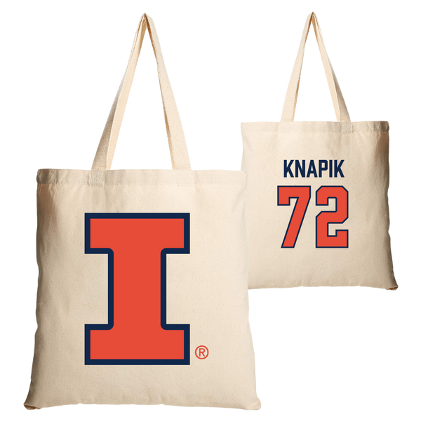 University of Illinois Football Tan Canvas Tote Bag - #72 Ayden Knapik