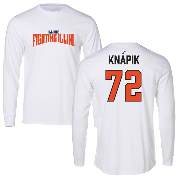 University of Illinois Football White Classic Long Sleeve - #72 Ayden Knapik