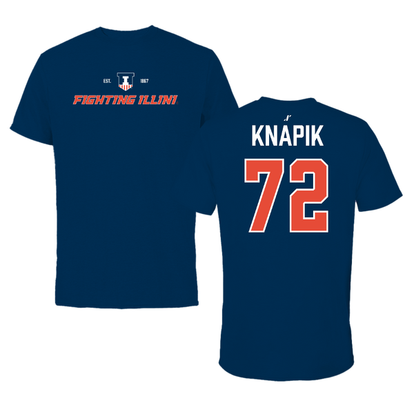 University of Illinois Football Navy General Tee - #72 Ayden Knapik