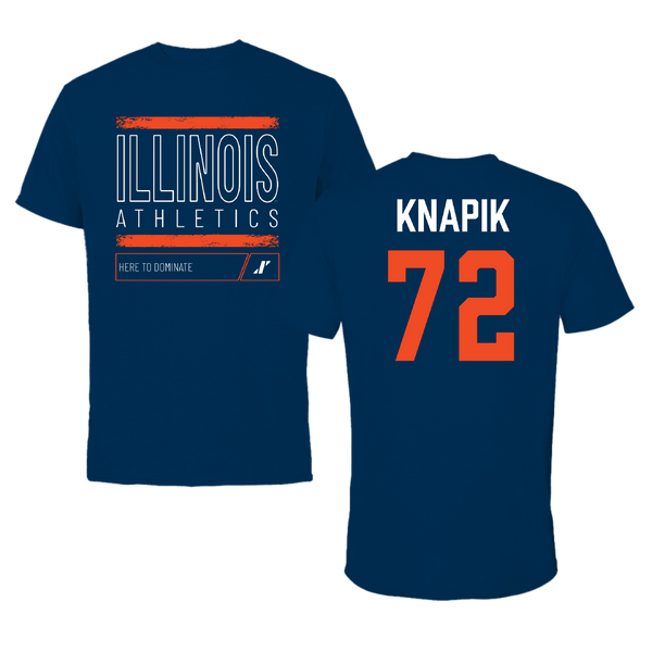 University of Illinois Football Navy Dominate Tee - #72 Ayden Knapik