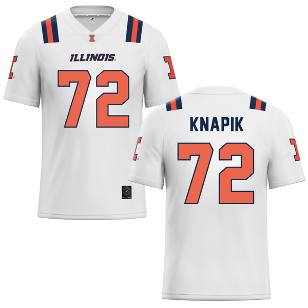 University of Illinois White Football Jersey - #72 Ayden Knapik