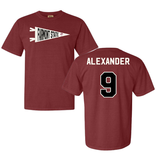 Fairmont State University Football Maroon Pennant Comfort Colors Tee - #9 Brandon Alexander