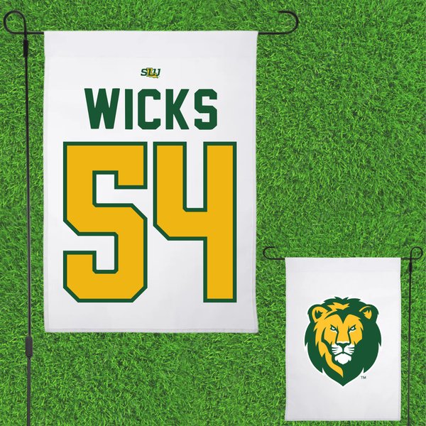 Southeastern Louisiana University Football White Garden Flag - #54 Brockhim Wicks