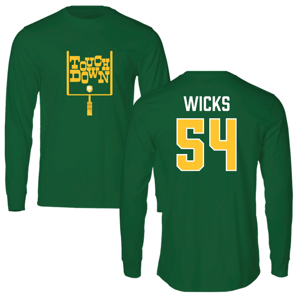 Southeastern Louisiana University Football Green Touchdown Long Sleeve - #54 Brockhim Wicks