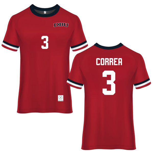 Dallas Baptist University Red Soccer Jersey - #3 Bruno Correa
