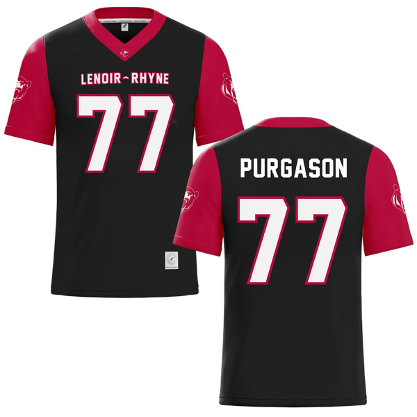 Lenoir-Rhyne University Black Football Jersey - #77 Cade Purgason