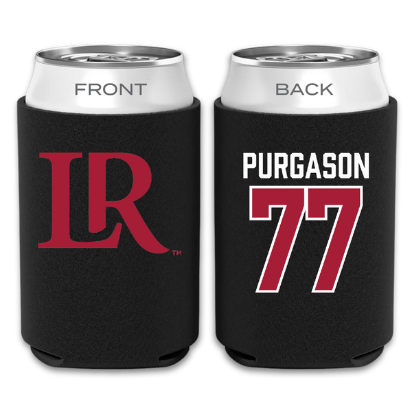 Lenoir-Rhyne University Football Black Can Cooler - #77 Cade Purgason