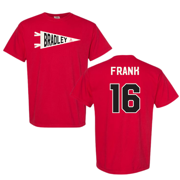 Bradley University Soccer Red Pennant Comfort Colors Tee - #16 Caden Frank