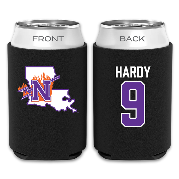 Northwestern State University Football Black Can Cooler - #9 Cam Hardy