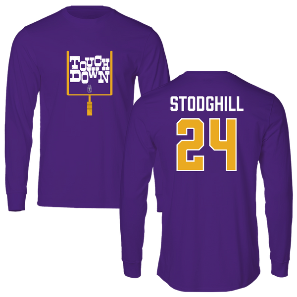 University at Albany Football Purple Touchdown Long Sleeve - #24 Cam Stodghill