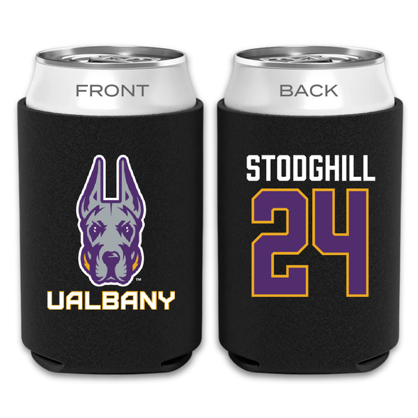 University at Albany Football Black Can Cooler - #24 Cam Stodghill