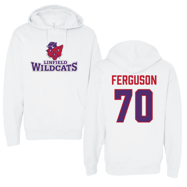 Linfield University Football White Hoodie - #70 Camden Ferguson