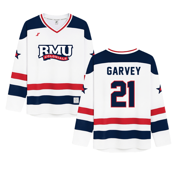 Robert Morris University White Hockey Jersey - #21 Cameron Garvey