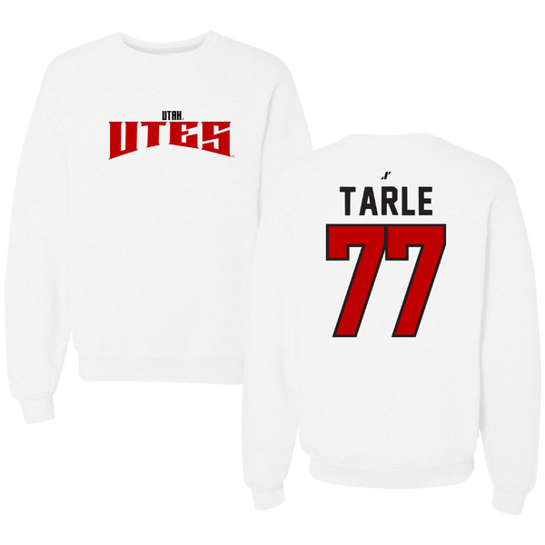 University of Utah Softball White Classic Crewneck - #77 Candace Tarle