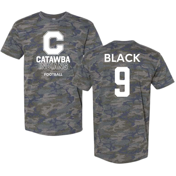 Catawba College Football Vintage Camo Tee - #9 Carson Black