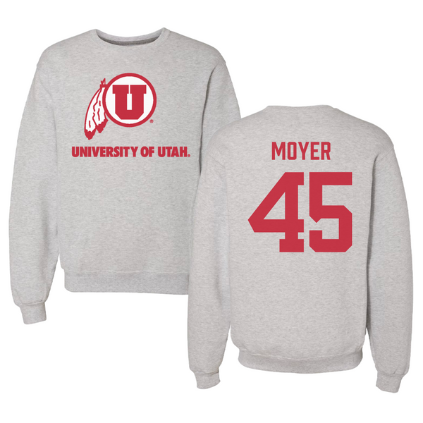 University of Utah Lacrosse Gray Crewneck - #45 Carson Moyer