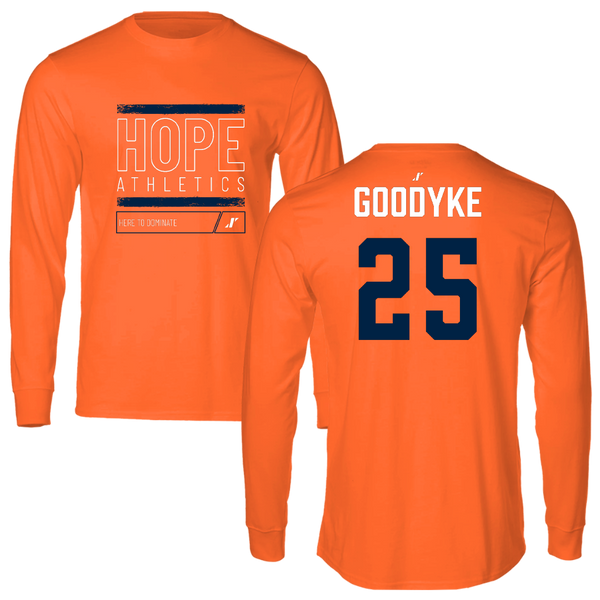 Hope College Basketball (M) Orange Dominate Long Sleeve - #25 Carter Goodyke