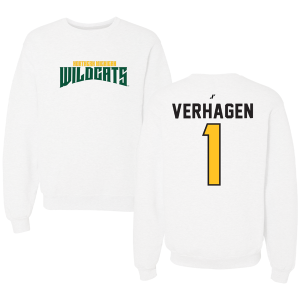 Northern Michigan University Basketball White Classic Crewneck - #1 Casey Verhagen