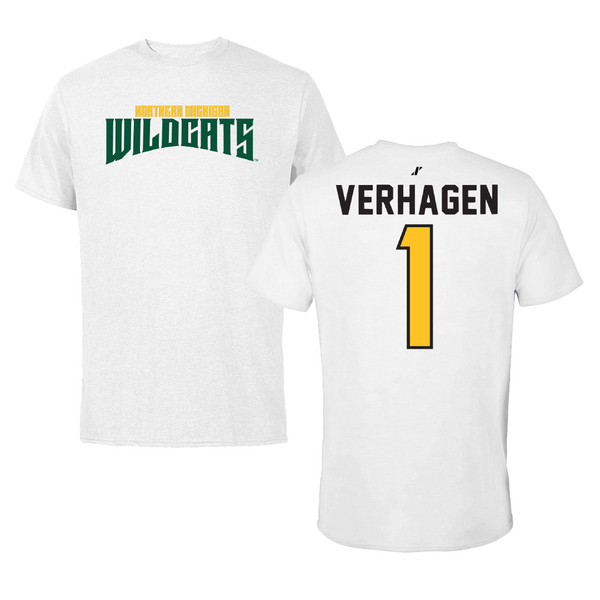 Northern Michigan University Basketball White Classic Tee - #1 Casey Verhagen