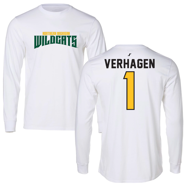 Northern Michigan University Basketball White Classic Long Sleeve - #1 Casey Verhagen