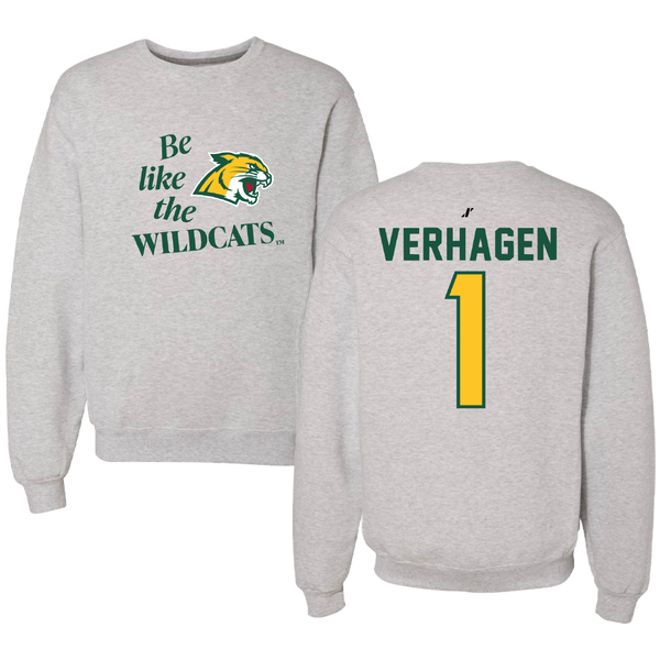 Northern Michigan University Basketball Light Gray Be Like Us Crewneck - #1 Casey Verhagen