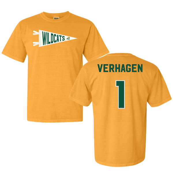 Northern Michigan University Basketball Gold Pennant Comfort Colors Tee - #1 Casey Verhagen