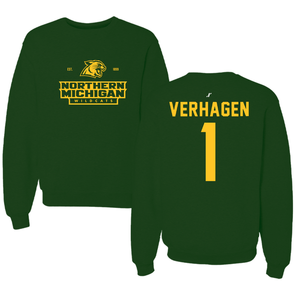 Northern Michigan University Basketball Forest Green General Crewneck - #1 Casey Verhagen