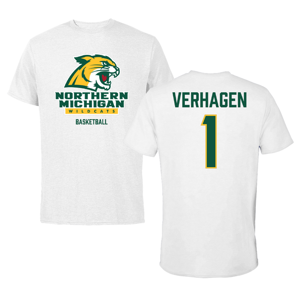 Northern Michigan University Basketball (M) White Tee - #1 Casey Verhagen