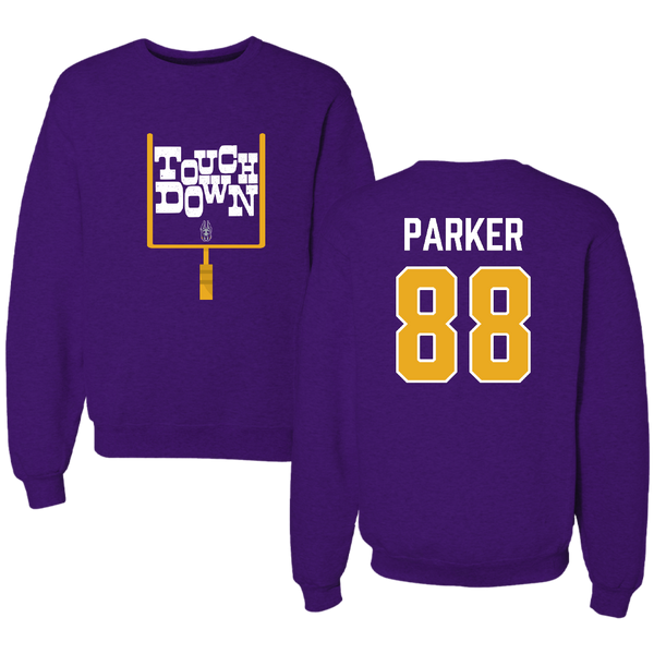 University at Albany Football Purple Touchdown Crewneck - #88 Chad Parker