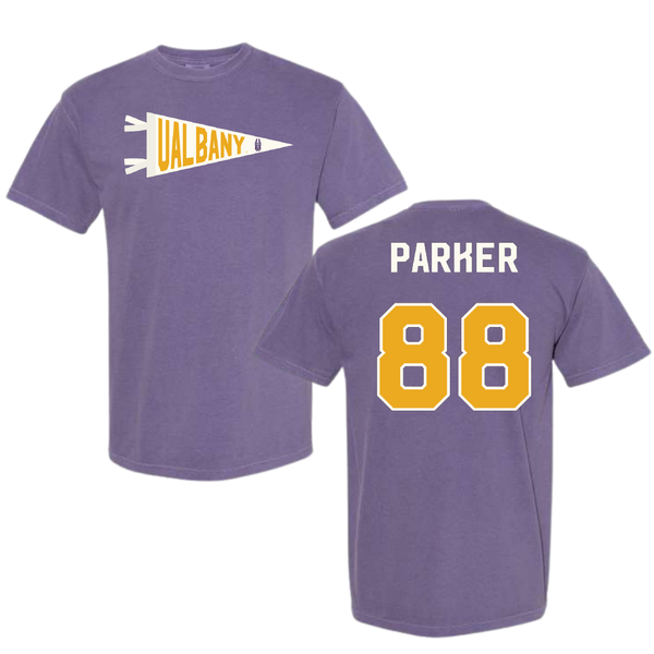 University at Albany Football Purple Pennant Comfort Colors Tee - #88 Chad Parker