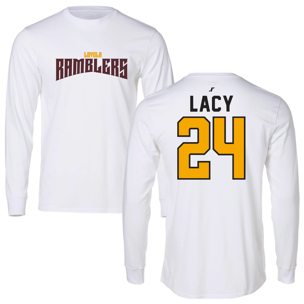 Loyola University-Chicago Soccer White Classic Long Sleeve - #24 Charlie Lacy